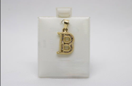 10K Gold Letter B Pendant - Cubic Zirconia Initial Charm